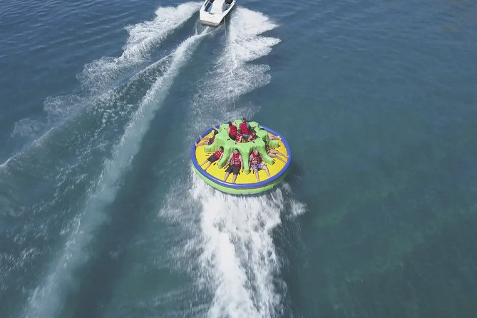 Un nuovo modo di vivere i giochi acquatici da una nuova prospettiva, direttamente con una vista sul mare, uno schienale migliorato per far comunicare meglio i passeggeri e un sistema di traino rotante per aumentare il divertimento.